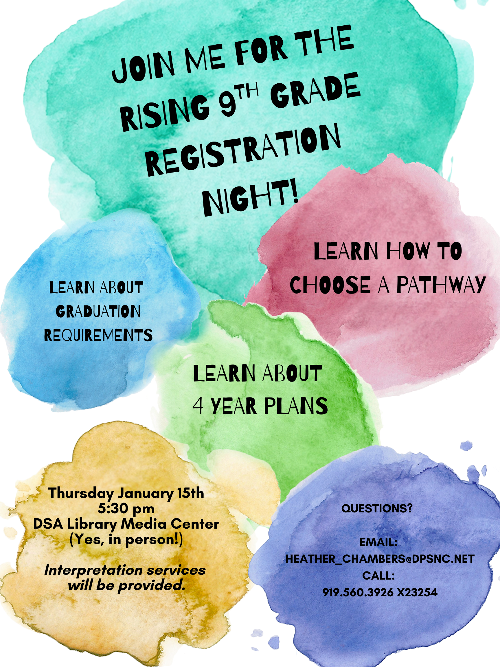 Event: Arts Career Symposium Date: February 4, 2026 Time: 8:30 AM – 1:00 PM Set-Up: 8:30–9:00 AM Take-Down: 12:30–1:00 PM Location: Durham School of the Arts 400 N. Duke St., Durham, NC 27701